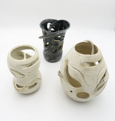 The last of my series of "Us vs Them", wheelthrown stoneware and modified, followed by minimal glazing.
